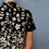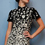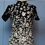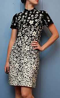 Beautiful high necked black and white floral print dress Stretchy 70s black and white floral fabric Great fabric, fades from mostly black to mostly white flowers at the hem Sheath dress style Rear zip Knee-length a-line skirt
